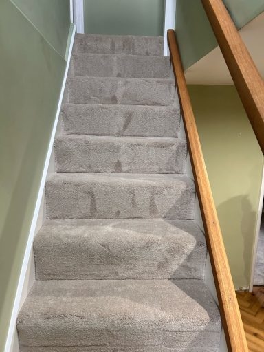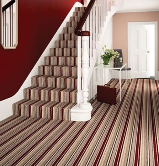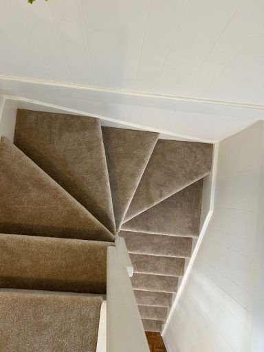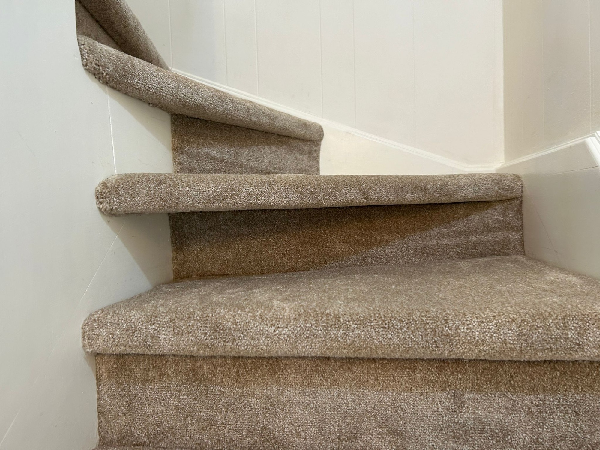 Stairs and hallway in beige carpet