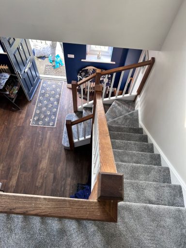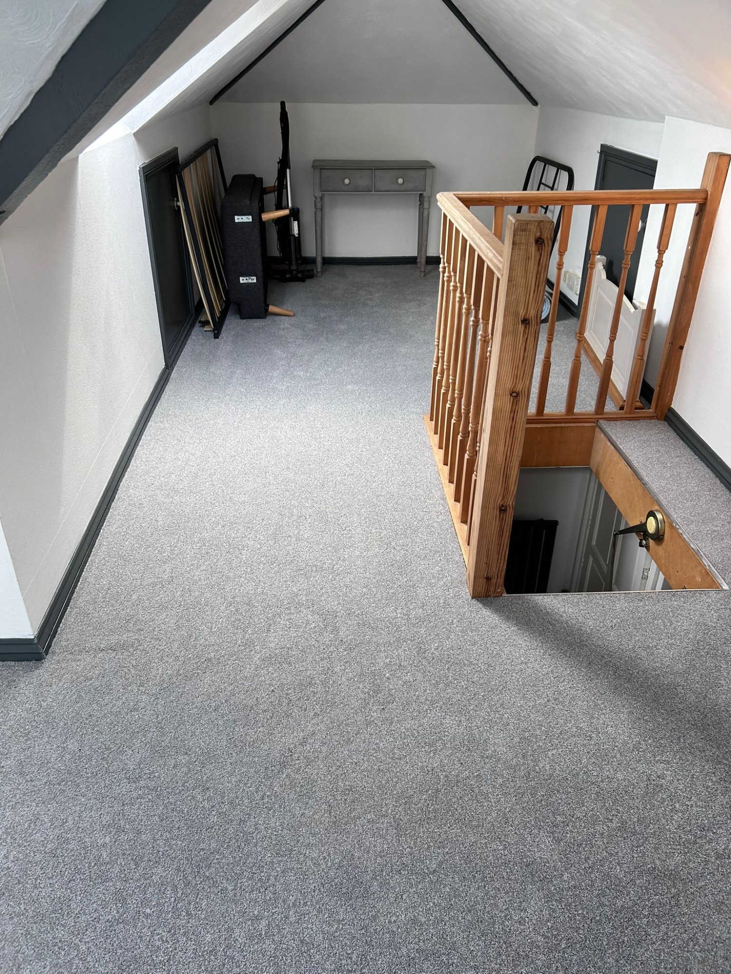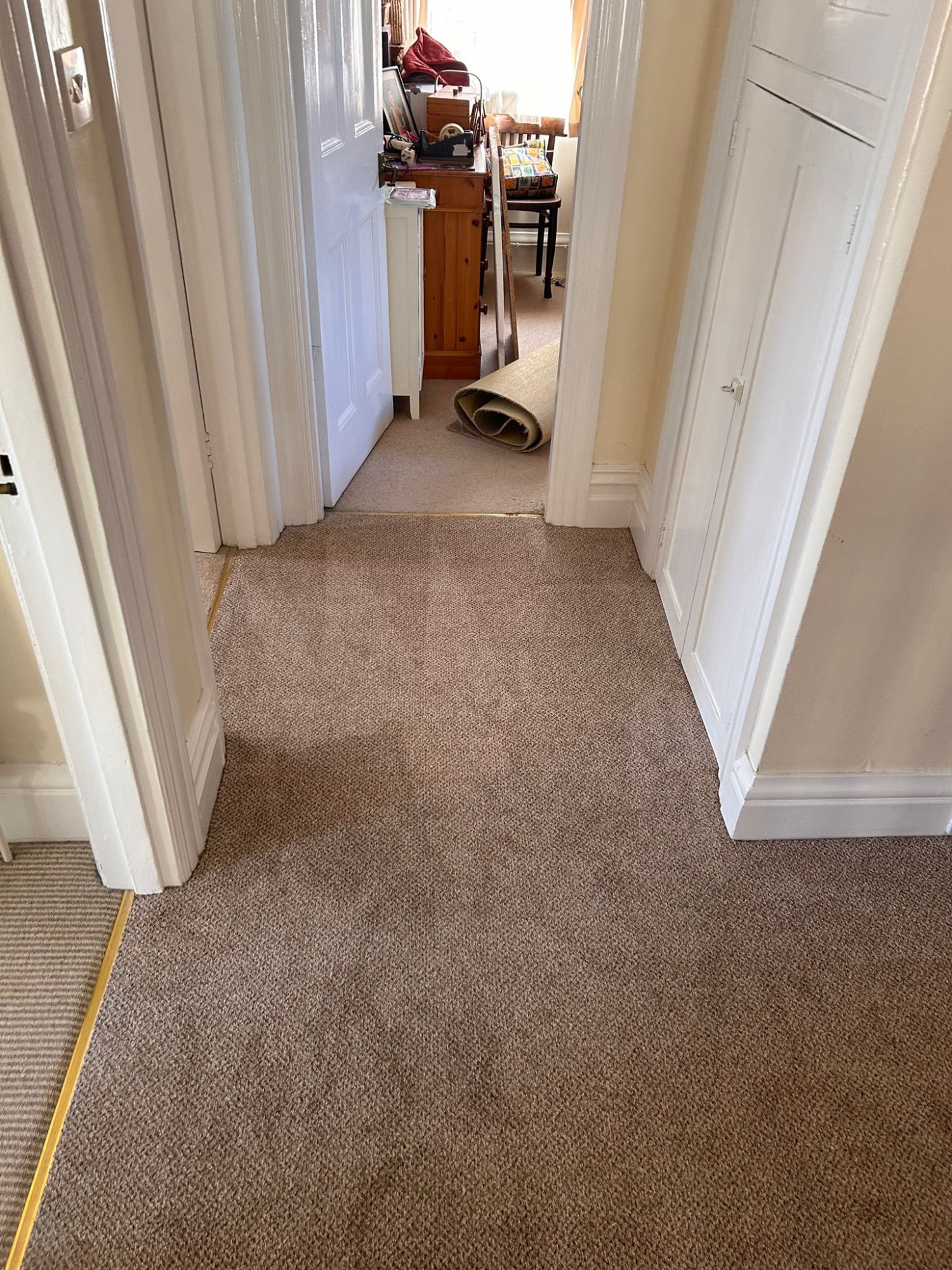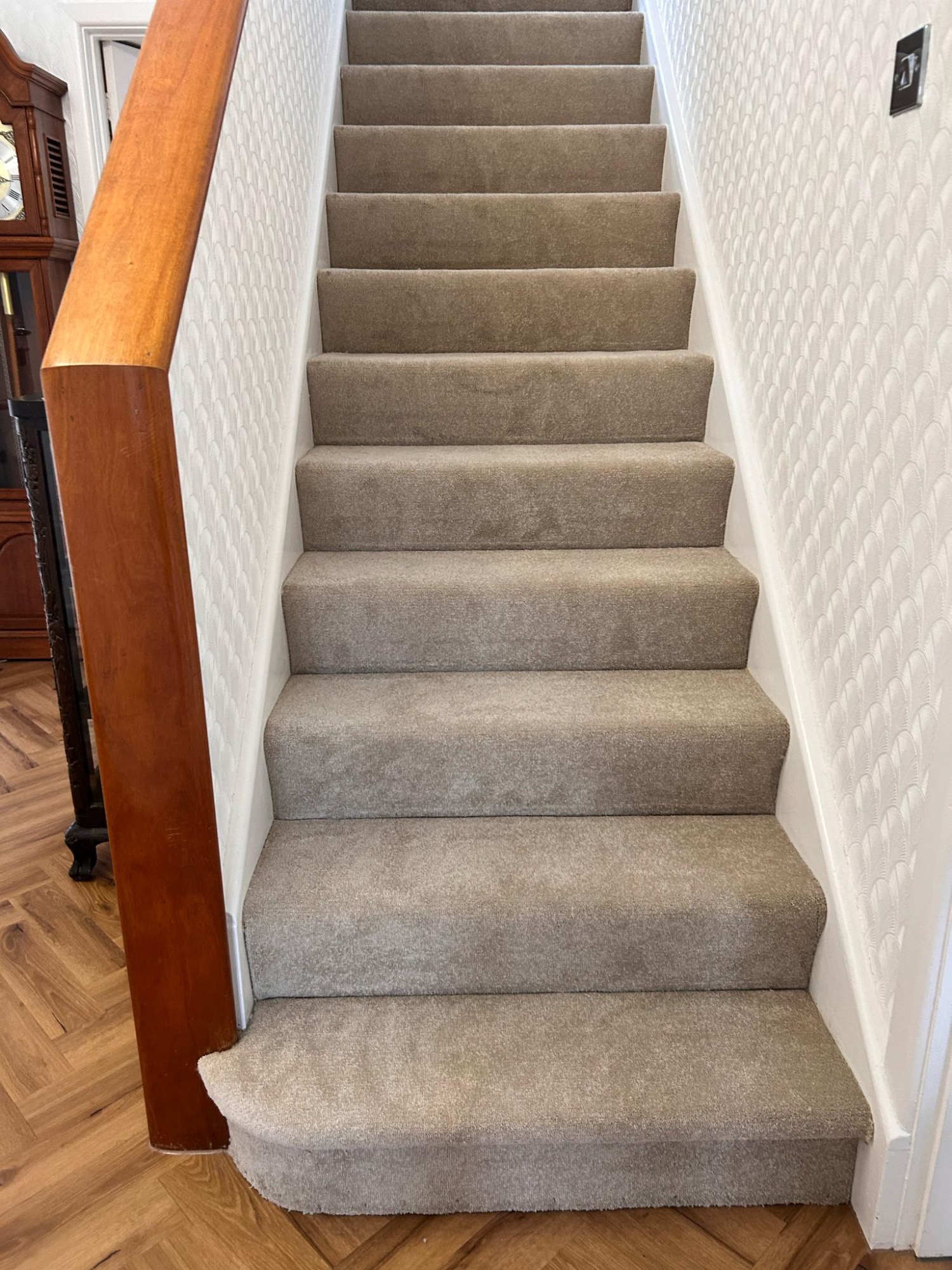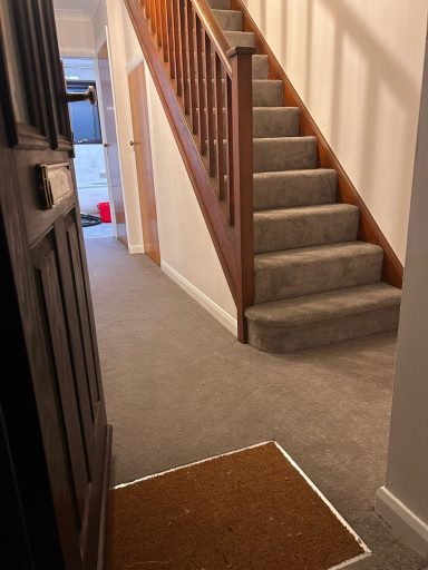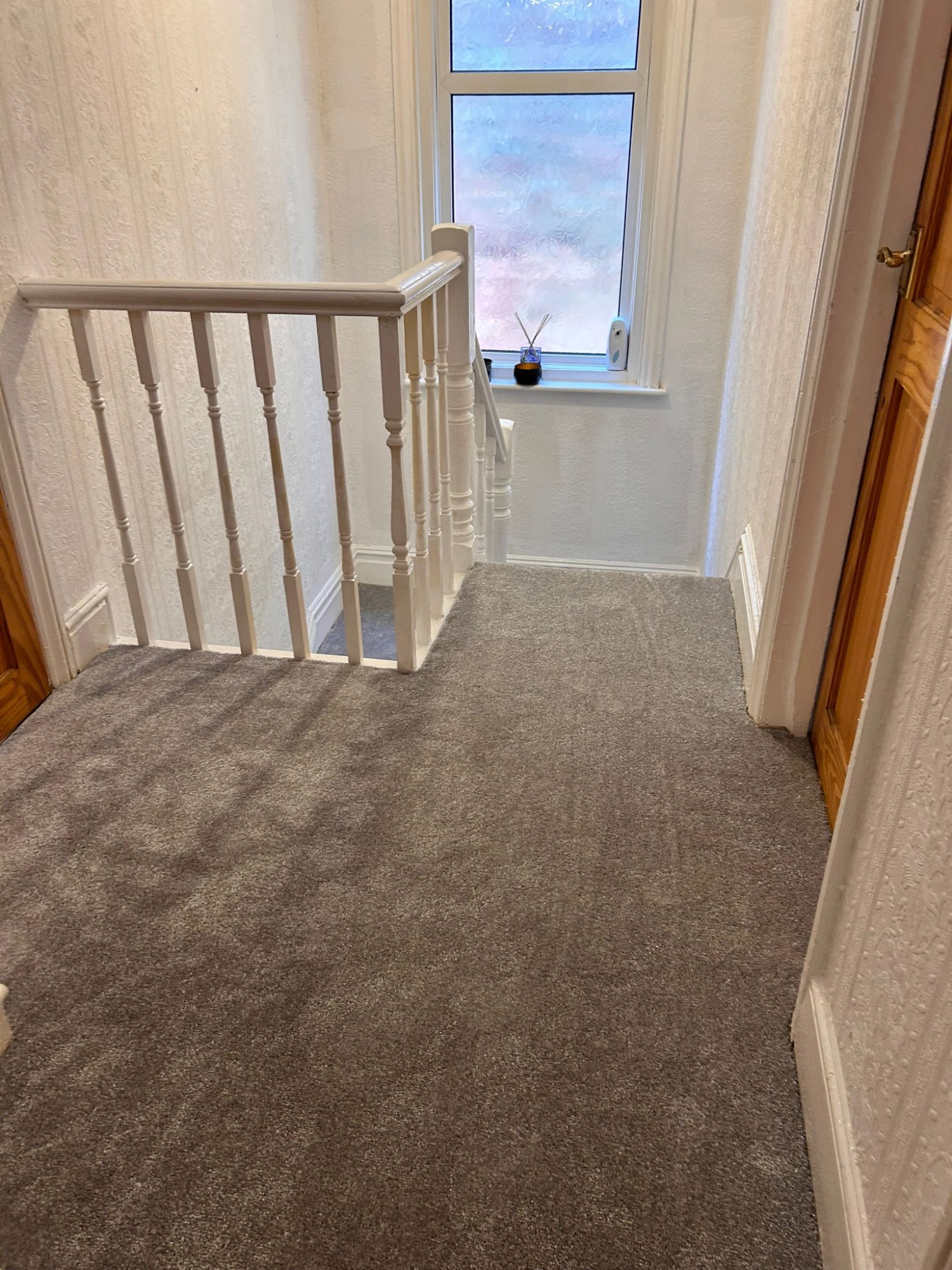 This stairs and hallway were completed in a soft beige carpet, with added entrance mat well to protect the carpet.