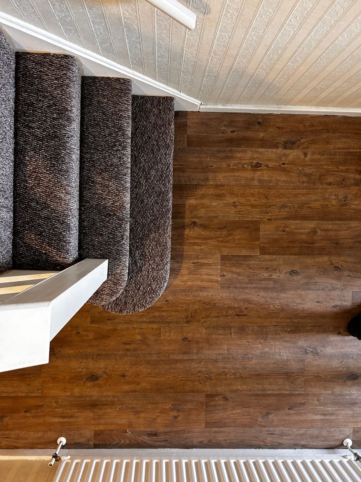 Landing completed in brown carpet